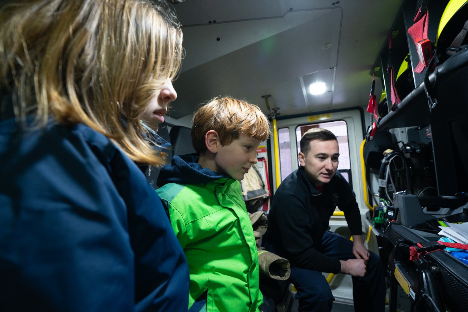 While walking back to Wex in Whitechapel to return the lens my children and I stopped outside Whitechapel Fire Station having briefly heard a siren. We were beckoned in and shown round; I fumbled a bit with the camera and they’re not my best photos, but the wide-angle really came into its own in a small space – here’s all four of us in the back of a fire engine at 16mm. I again (failing to learn the lessons it seems from the Mark I lens) didn’t really appreciate how shallow the depth of field would be at 16mm at f/4 – I probably should have gone much narrower (f/8 would have given me about 35cm in front of my son, and 2m behind him). I’m still pleased I took the shot. Interestingly you can see some ghosting here from the bright light (see the green blur just above my son’s head and to the right).